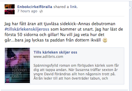 Feelgoodbibliotekarien på Enbokcirkelföralla läser just nu Tills kärleken skiljer oss. Det här är hennes reaktion efter de första sidorna. Om två veckor, den 24:e april, finns den ute i bokhandeln!