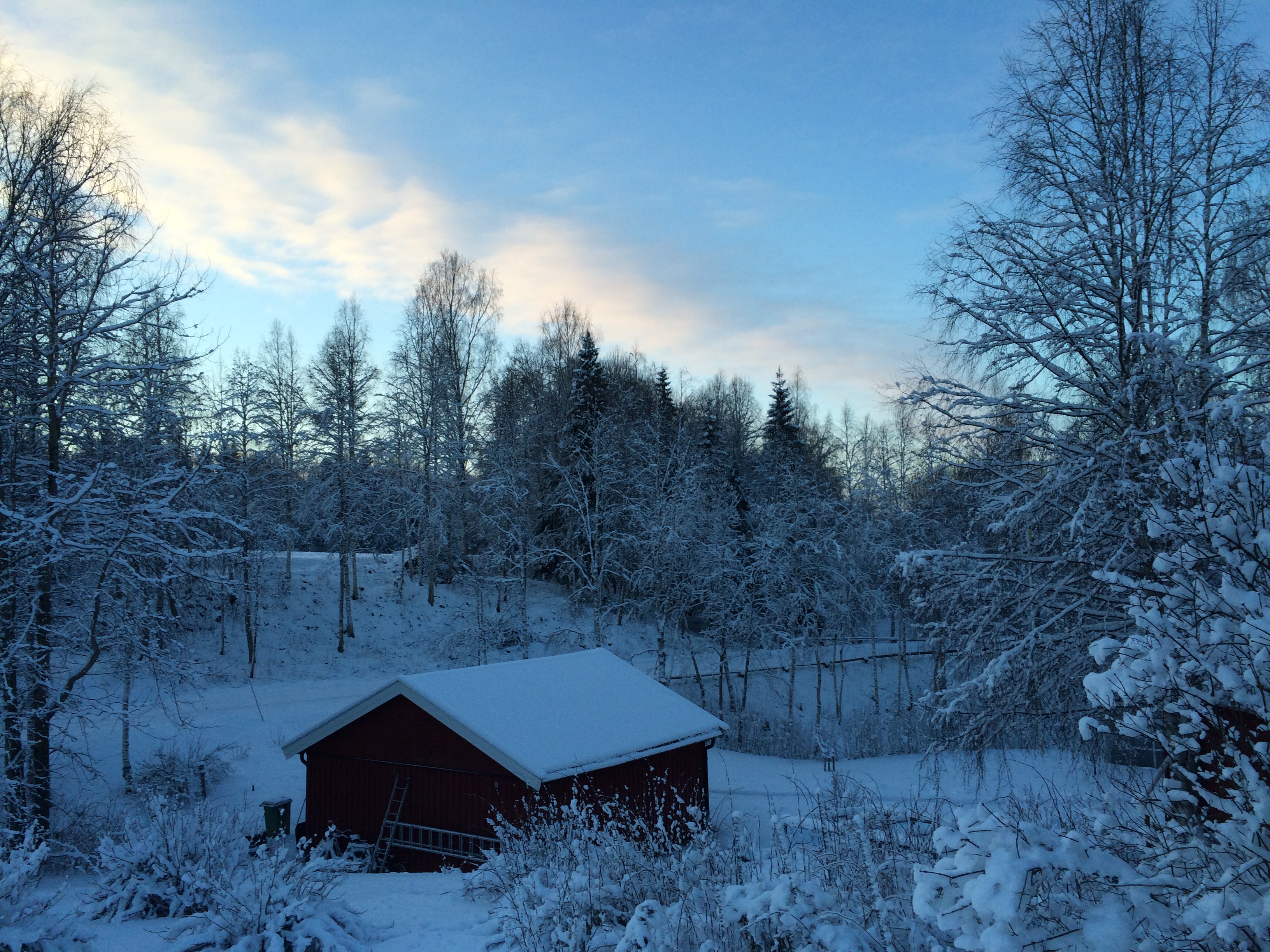 Lite bilder från dagen i dag. Inga fluffiga julgranar där jag är, i stället spretiga granar direkt från skogen. Kallt och snö och alldeles underbart. 😉