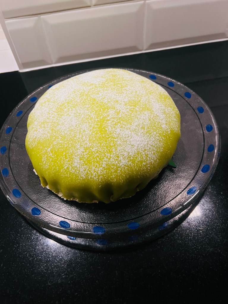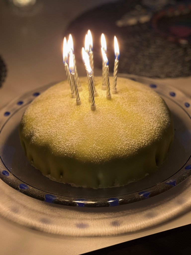 Annars är jag inne i en riktig bakperiod just nu och bakade blåbärsmuffins häromdagen och funderar på att baka en påskprinsesstårta (till påsk). Problemet är bara att komma över gul marsipan. Verkar bara gå att beställa hem. Så jag får väl göra det helt enkelt. Bakade för övrigt min första prinsesstårta någonsin när dottern fyllde år i februari, har alltid tänkt att det måste vara så svårt. Men följde Camilla Hamids recept och youtube-klippet som finns länkat på samma sida och gick riktigt bra (resultatet nedan). Nästa gång får jag lägga till garnering …